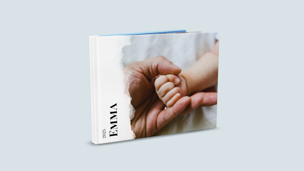 Wir empfehlen ein Babyalbum mit Hardcover zu gestalten. Diese Option ist besonders stabil und langlebig.