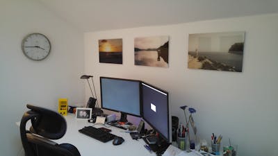 Wollen Sie dagegen, wie Markus B. im vorliegenden Beispiel, mehrere Fotos aufhängen, geht es um die ideale Aufteilung der Wandbilder untereinander. Das ist einerseits Geschmacksfrage - aber natürlich gibt es auch hier verschiedene Varianten, die teils sogar eigene Bezeichnungen tragen.